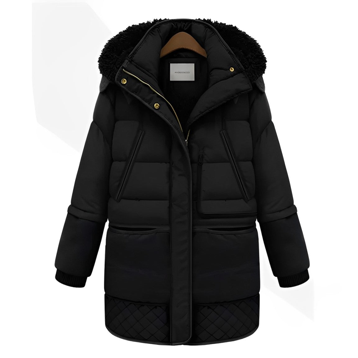 Der Morganne-Mantel ist mit einer doppelten Pelzfütterung ausgestattet, die Ihnen von morgens bis abends ein Gefühl des Wohlbefindens und unvergleichlicher Wärme vermittelt. Egal, ob Sie durch die Straßen schlendern oder einen Winterspaziergang machen, Sie werden sich bequem und schick fühlen. Der außergewöhnliche Komfort ermöglicht es Ihnen, Stil und Bewegungsfreiheit perfekt zu kombinieren, um einen kompromisslosen Look zu kreieren.